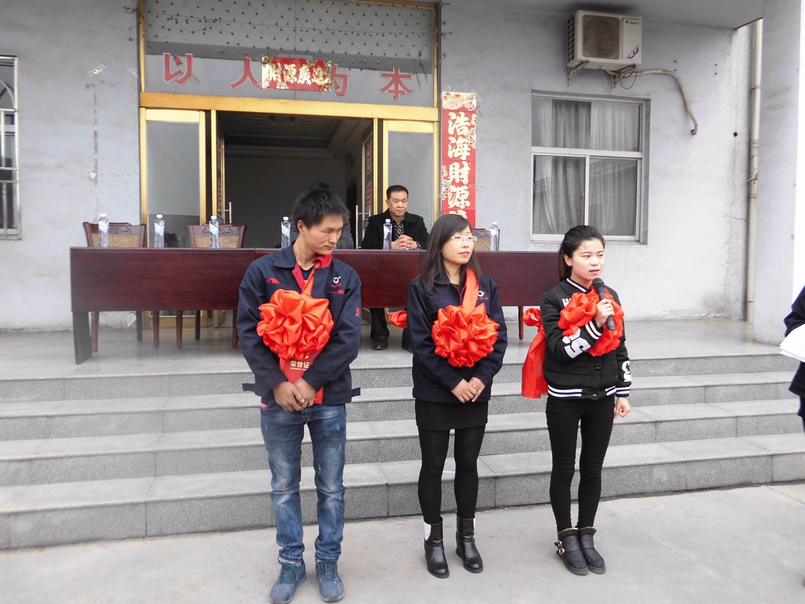經(jīng)過民主評議和充分對2014年度在日常工作的表現(xiàn)及公司規(guī)章制度執(zhí)行情況考評和廣大員工自動、自發(fā)、自覺地為同事排憂解難,為公司增收節(jié)支,最終評出了以張新泓、孫麥貴同志為代表的14位優(yōu)秀員工,現(xiàn)在,我代表公司全體人員向您們表示熱烈祝賀,也真誠希望你們保持旺盛的斗志,再接再厲,在今后的工作和生活中樹立榜樣,做出更加優(yōu)異的成績,同時也希望我們廣大員工向他們學(xué)習(xí),學(xué)習(xí)他們以公司為家,以企業(yè)發(fā)展為中心的精神,學(xué)習(xí)他們敢為人先,敢于拼搏的精神,學(xué)習(xí)他們團(tuán)結(jié)同事,顧全大局的精神。