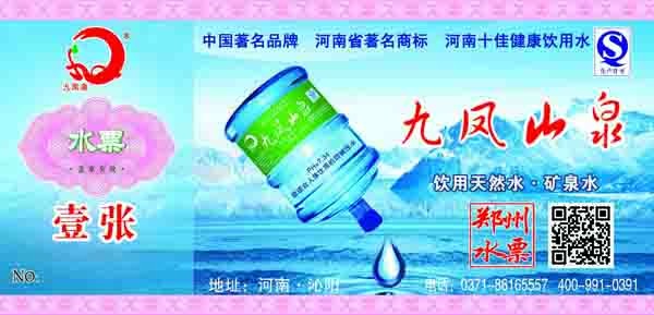 為加大九鳳泉礦泉水的宣傳力度,進一步增強人們愛九鳳泉護九鳳泉的意識,并讓鄭州市民更好地了解九鳳泉、認識九鳳泉,九鳳泉公司總部適時為鄭州分公司發(fā)行新水票,為鄭州水票打制一張新名片。水票上有“九鳳山泉”字樣,清晰的防偽標示,它以嶄新的面孔呈現(xiàn)給大家,讓鄭州市民領略九鳳泉礦泉水的特殊魅力。